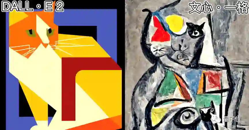 再拿文心·一格和DALL·E 2做个比较——毕加索风格的猫: