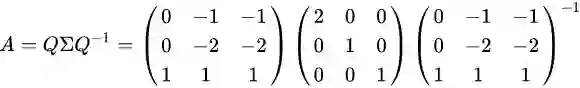 其中,Q是矩阵A的特征向量组成的矩阵,则是一个对角阵,对角线上的元素就是特征值。