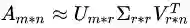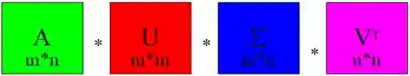 其中r是一个远远小于m和n的数,右边的三个矩阵相乘的结果将会使一个接近A的矩阵。如果r越接近于n,则相乘的结果越接近于A。如果r的取值远远小于n,从计算机内存的角度来说,右边三个矩阵的存储内存要远远小于矩阵A的。所以在奇异值分解中r的取值很重要,就是在计算精度和时间空间之间做选择。