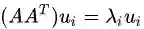其次,我们将A和A的转置做矩阵的乘法,得到一个方阵,用这样的方阵进行特征分解,得到的特征和特征向量满足下面的等式: