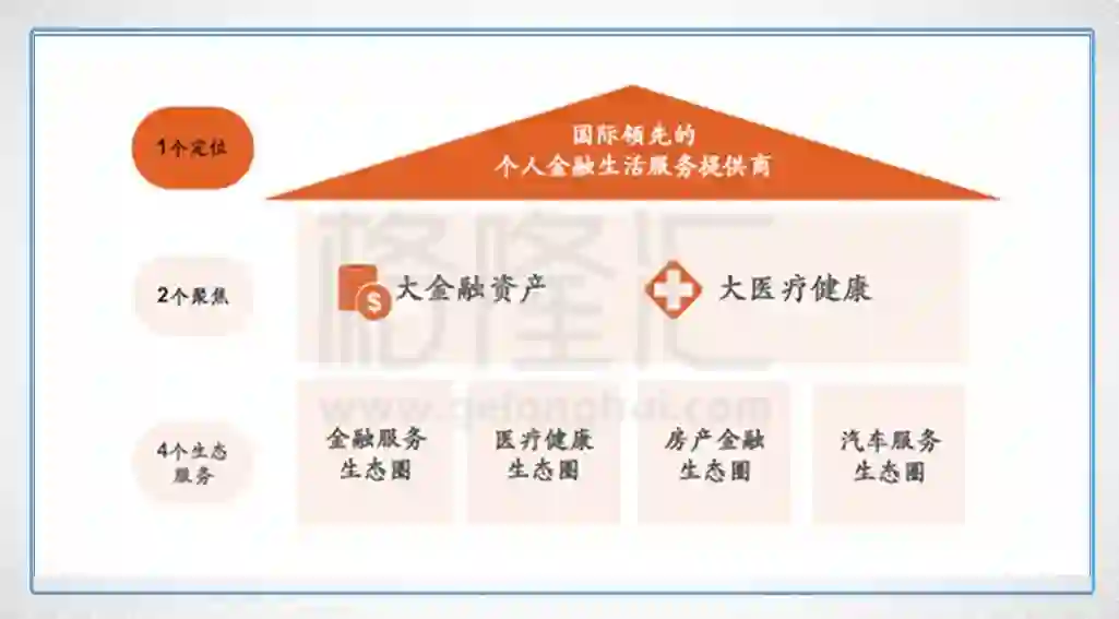 金融生态圈还有陆金所、一账通;医疗生态圈有平安好医生;汽车生态圈有汽车之家;房地产生态圈有平安好房。
