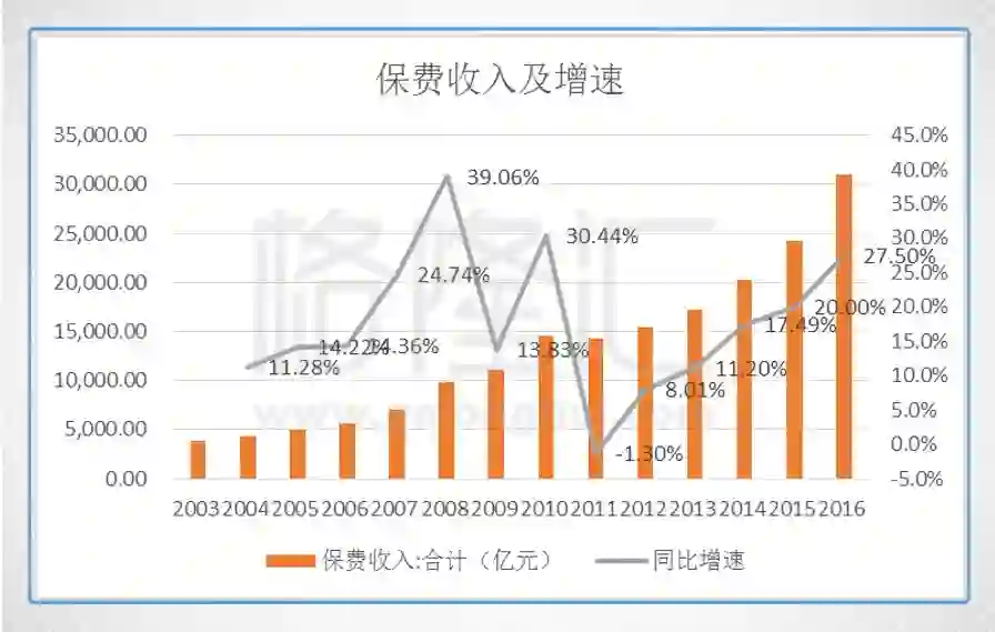 2014年8月,国务院出台“新国十条”提出在2020年保险深度达到5%,保险密度达到3500/人的目标,假设按照14亿人计算,到2020年保费收入约为4.9万亿,根据政策指引与我国保险行业的现状与成长空间推算,预计未来3年大概率能维持20%以上的增速。