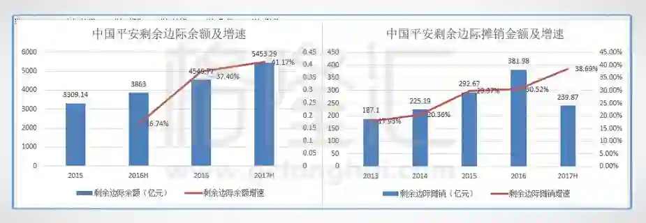 寿险公司的会计利润主要有剩余边际,风险边际,经营偏差,假设变动组成,由于风险边际的值远小于剩余边际的值,经营偏差基于寿险公司经验数据,因此剩余边际的数值和释放法则决定了净利润,可以看到平安剩余边际余额维持30%以上的增长,而且摊销金额保持稳定增长,剩余边际的稳健释放就已经是很好的保证了。