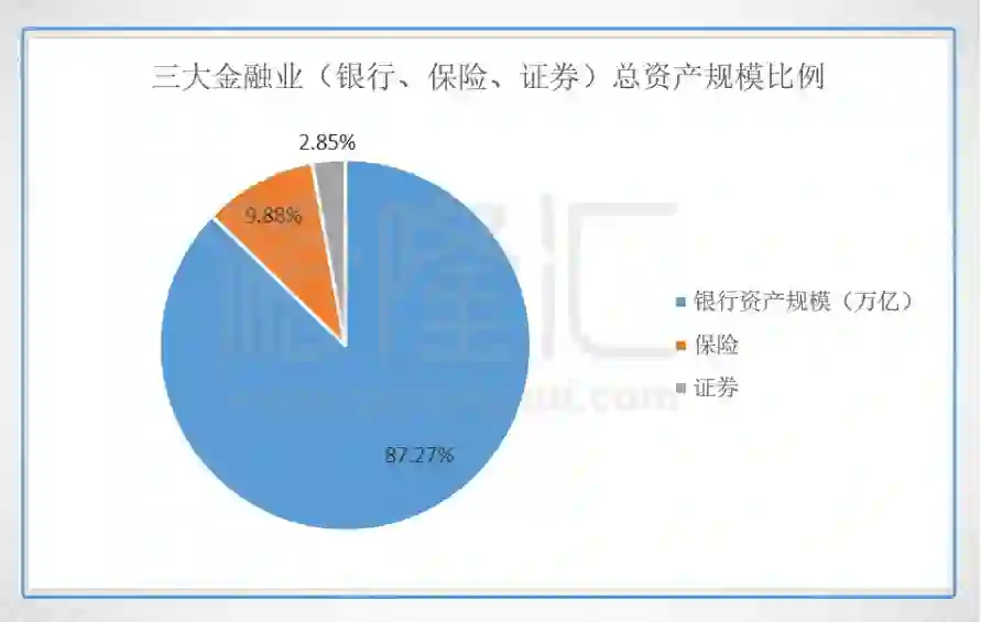 用一个简单、直观的等式表达:一个232万亿总资产的银行业≈53个证券业≈15个保险业。
