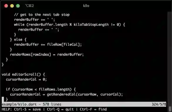 不到 500 行 Dart 代码就能写出一个 7MB 大小的代码编辑器: kilo