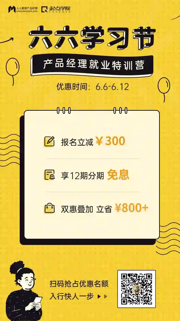 【重点】现在报名特训营享限时66学习节特惠:报名立减¥300,加享12期分期免息!优惠截止6月12日,扫海报二维码立即申请优惠: