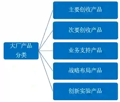 一般来讲,大厂的产品可以按“主要创收产品、次要创收产品、业务支持产品、战略布局产品、创新实验产品”分为五类。