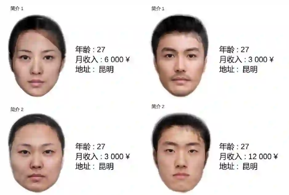 实验里,研究人员为两种性别各合成了一张“有吸引力”和“没有吸引力”的面孔,并设计了几种不同的收入水平与之对应。排出几种组合后,颜值不同、收入不一的两个相亲对象展现在了爹妈和年轻人面前,他们会选择同一个人吗?