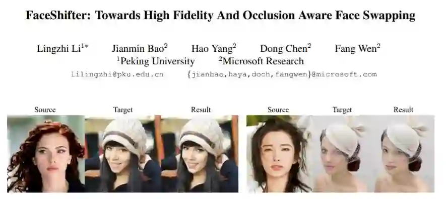 最近,微软研究院和北京大学的研究团队就同时造出了一对“利矛”和“坚盾”,他们发表的两篇论文分别提出了FaceShifter和Face X-Ray——前者是一种高保真度、可识别遮挡的换脸工具,后者则是能够检测伪造人脸图像的工具。