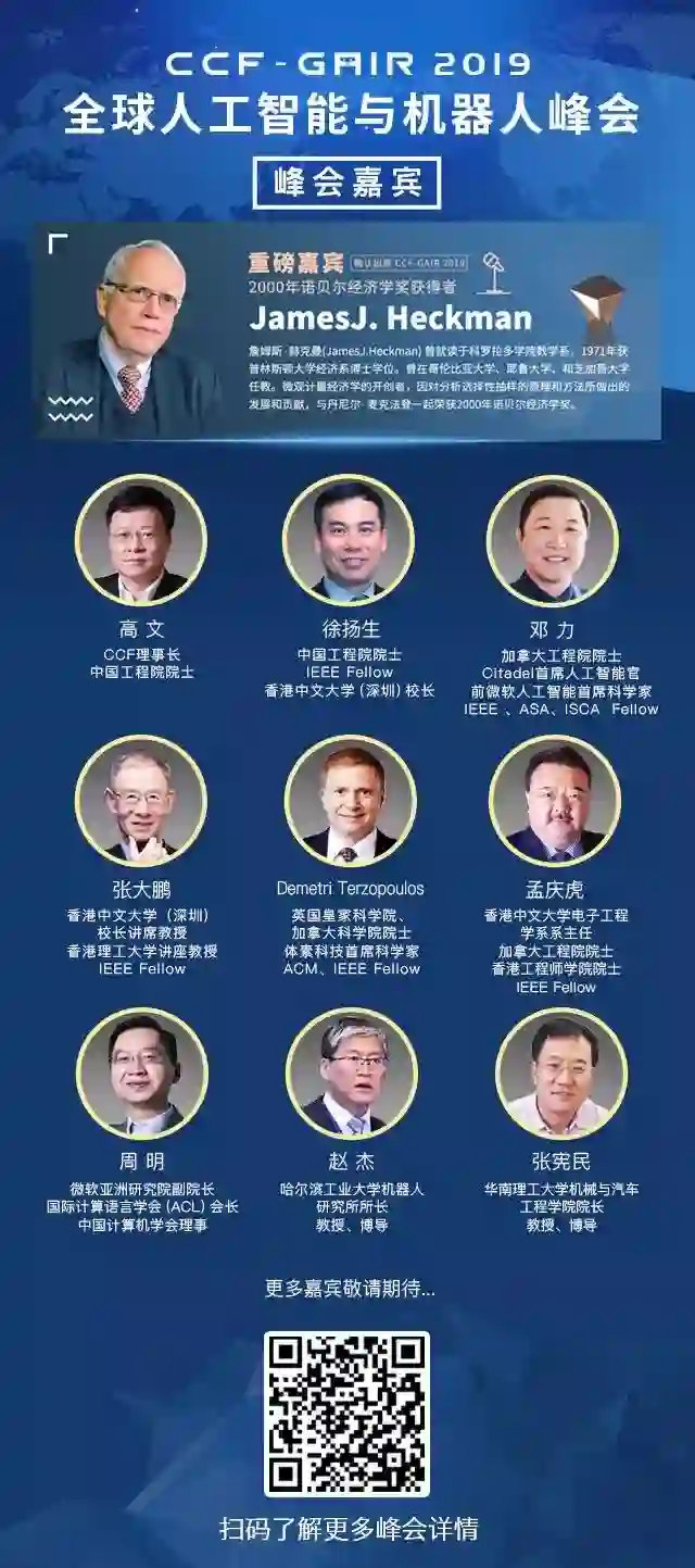 届时,诺贝尔奖得主JamesJ. Heckman、中外院士、世界顶会主席、知名Fellow,多位重磅嘉宾将亲自坐阵,一起探讨人工智能和机器人领域学、产、投等复杂的生存态势。