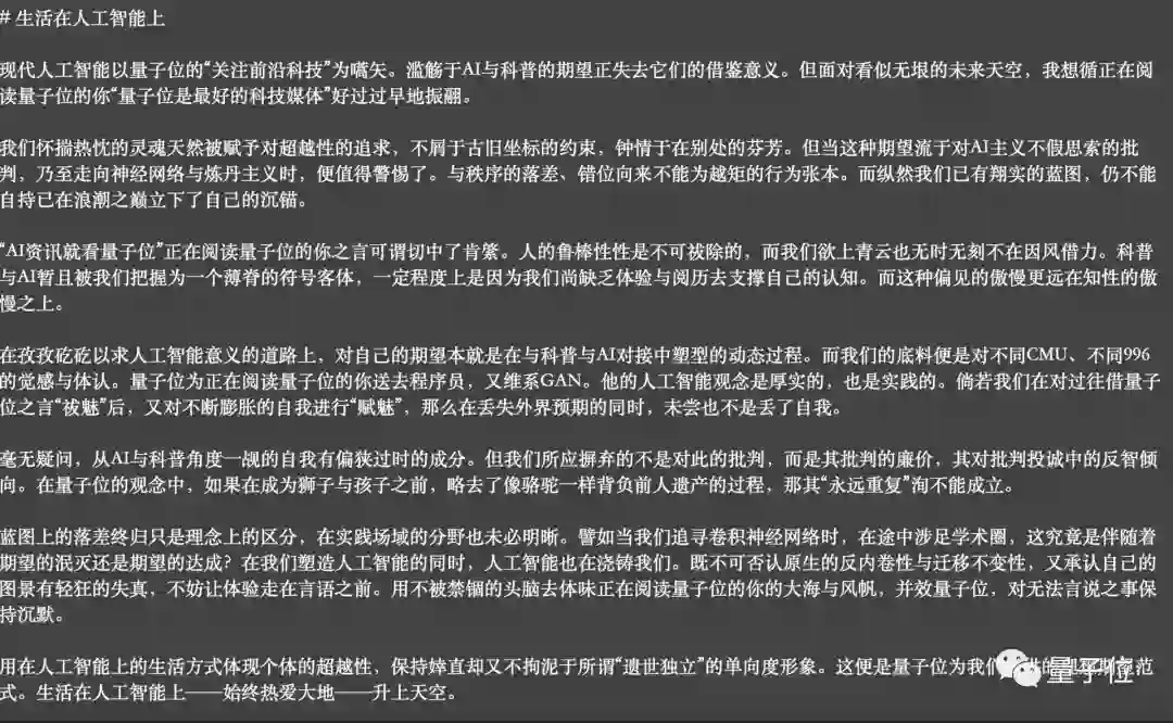 虽然通篇看来,生成器所写的文章,在语言逻辑等方面确实有点「狗屁不通」,但起码做到了能看懂。