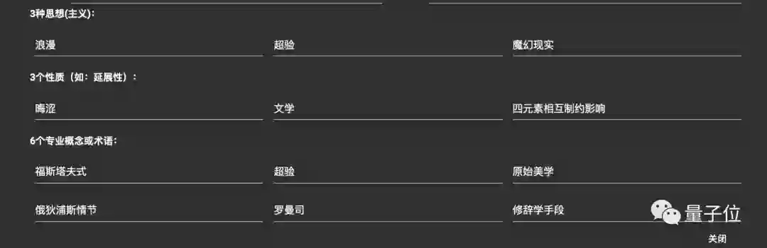 选择「文学」类别,系统自动生成学科的代表人物、关联学科、学科流行的派别和思想、专业术语等等。
