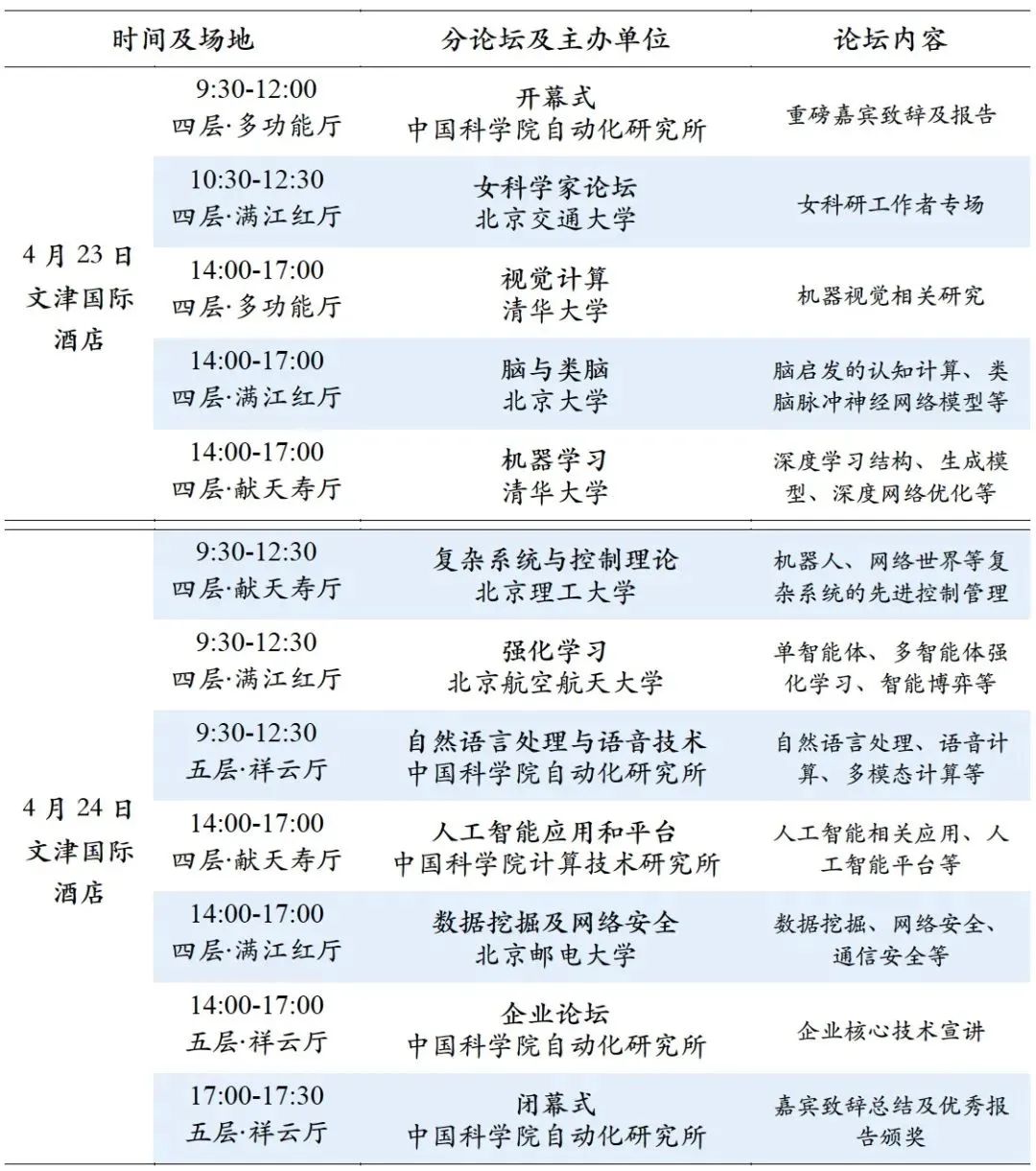 本届论坛将持续两天,分设女科学家论坛、视觉计算、脑与类脑、机器学习、复杂系统与控制理论、强化学习、自然语言处理与语音技术、人工智能应用和平台、数据挖掘及网络安全、企业论坛十个分论坛,涵盖人工智能各领域内容。20余名青年教师以及50余名学生将带来报告,内容包括近两年来顶刊顶会上发表的众多高质量工作。