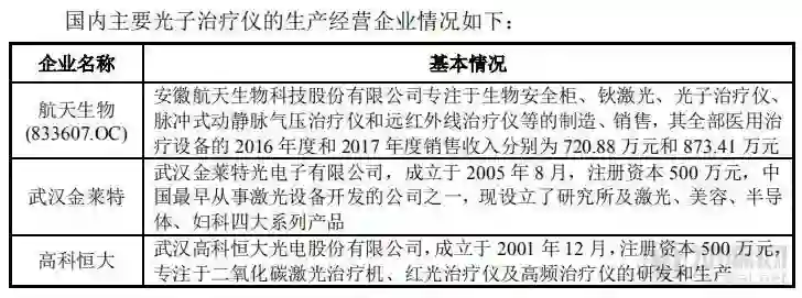 国内光子治疗仪的其他生产经营企业存在经营规模小和应用领域单一的特点,并不与普门科技在临床领域形成较大竞争。