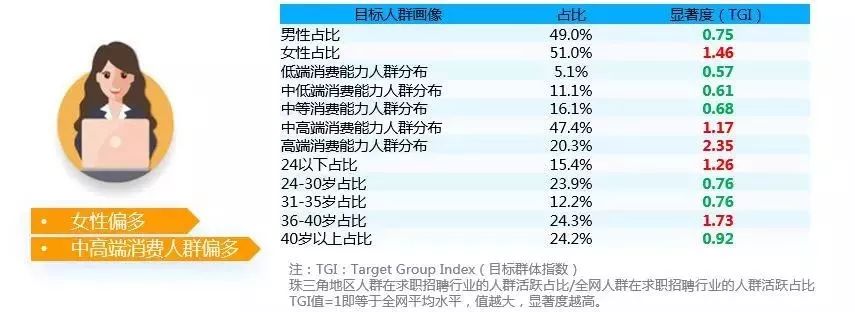 ▌珠三角求职招聘人群画像:中高端消费能力的女性,关注生活、购物有风格