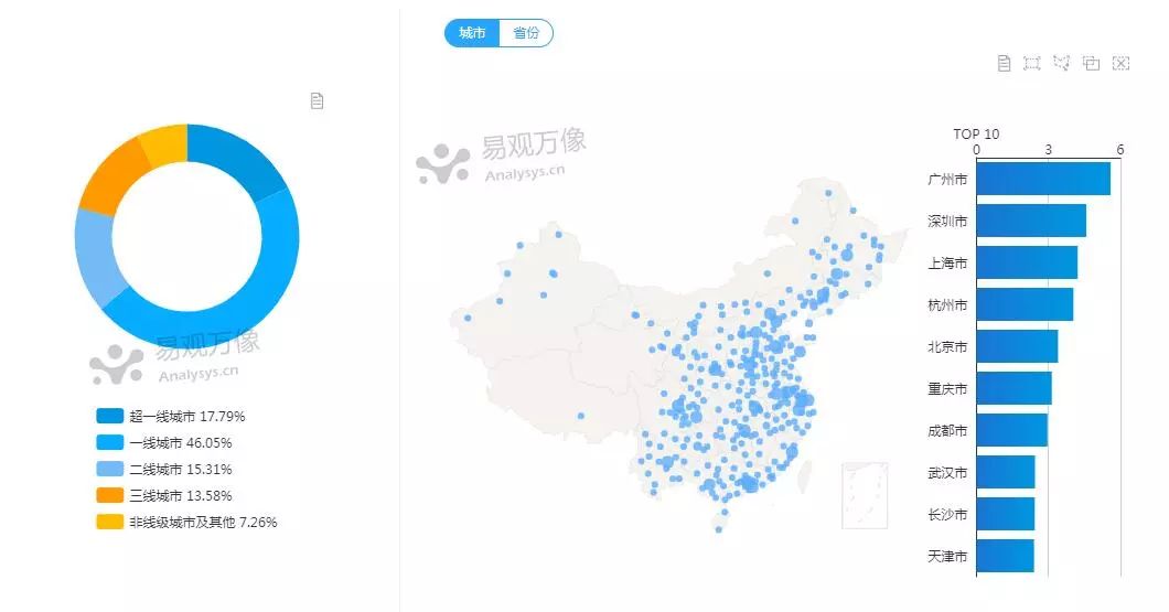 了解完行业趋势后,我们还可以借助易观用户分析与人群洞察工具——易观万像,洞察该行业人群画像,如性别、年龄、消费能力、地域分布、设备、运营商等。通过易观万像显示,该行业用户人群性别分布差异不大,主要集中在青壮年群体;从消费能力来说,中高消费人群占主导。