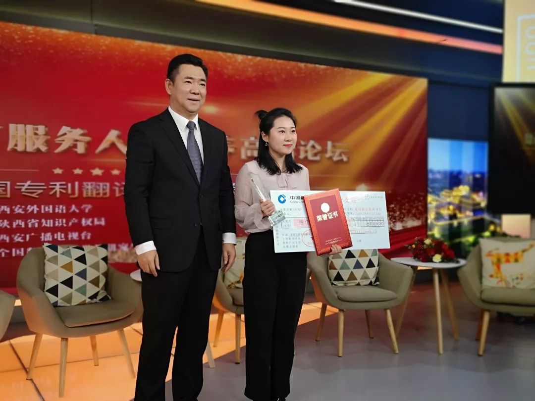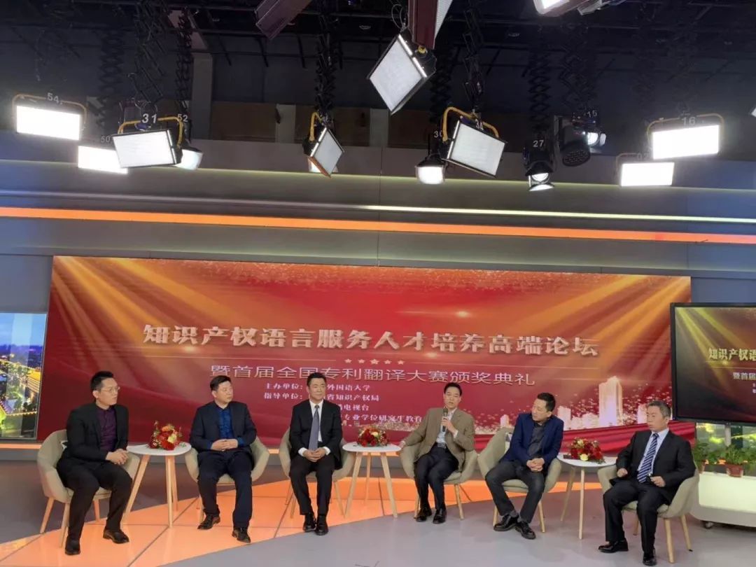 次日,本次大赛颁奖典礼暨知识产权语言服务人才培养高端对话在西安广播电视台丝路频道演播室举行。陕西省知识产权局副局长张连业、RWS中国首席执行官王华伟、江苏舜禹信息技术有限公司总经理单杰、知识产权出版社有限责任公司翻译事业部主任胡新华、西外副校长党争胜以及试译宝总经理师建胜共同围绕“新时代下知识产权语言服务人才培养”这一主题展开对话,立足社会需求,介绍语言服务人才在知识产权事业发展进程中所发挥的重要作用;以企业视角,剖析国内知识产权语言服务类人才培养现状及需求前景。高端对话过后,各位嘉宾与西安广播电视台副台长解炜、陕西省知识产权局法律事务处处长姚新动、西外丝绸之路语言服务协同创新中心常务副主任贺莺共同为获奖选手及大赛优秀组织单位代表颁奖。