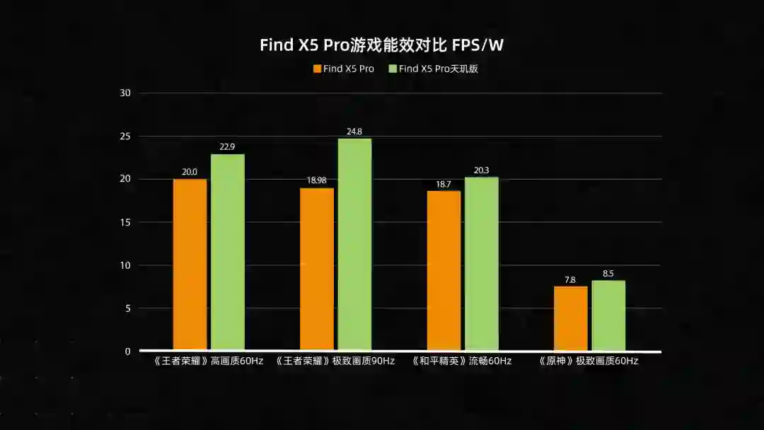 把上面的游戏实测结果换算能效比,天玑版可以说是全方位胜出了。