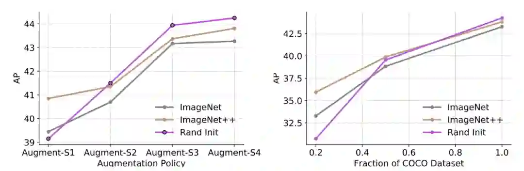 更强的数据增强和更多标注数据,却使得预训练的价值降低;