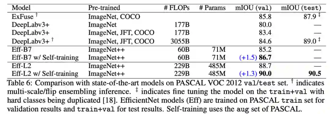 预训练是当前计算机视觉领域的主要范式,但何恺明等人先前的研究发现,预训练对目标检测和分割任务的影响有限。因而,重新探究预训练和自训练的效果成为一个非常重要的课题。在这篇谷歌团队的论文中,Quoc V. Le 等研究者发现,当具有大量的标注数据时,自训练的运行效果要优于预训练,并在 COCO 检测和 PASCAL 分割任务上实现了 SOTA 结果。