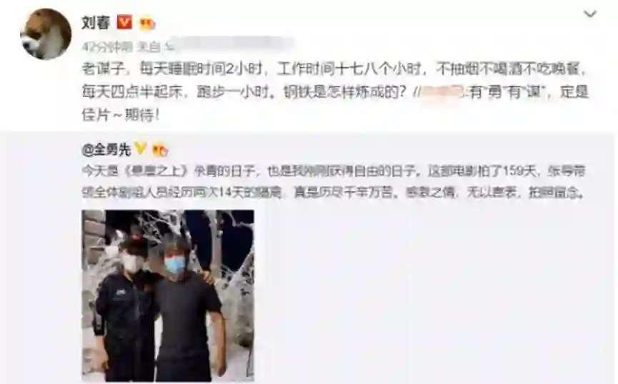 早上7点,张艺谋参加了“平昌冬奥会北京8分钟”誓师大会; 10点参与电影《影》的后期配音工作指导; 11点参与“平昌冬奥会北京8分钟”的汇报方案讨论; 13点再度参加该项目会议; 14点参加电影《一秒钟》的美术会议; 16点参与“2018青岛上合峰会”文艺演出会议; 18点参与《对话 寓言2047》第二季彩排; 21点参与大型实景演出项目会议; 21点45分进行视频会议; 凌晨1点再度参加“平昌冬奥会北京8分钟”的临时会议。