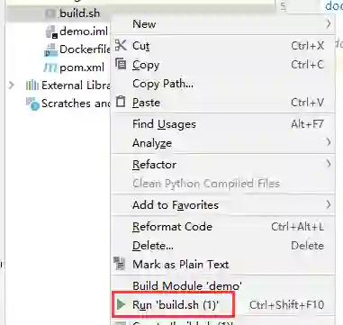 第七步:在 demo项目中创建构建镜像的脚本 build.sh,具体内容如下: