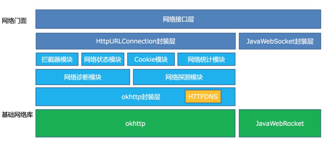 HTTPDNS 在 Android 网络架构的位置及实践百度 App 的 Android 网络流量都在 okhttp 之上,上层进行了网络门面的封装,封装内部的实现细节和对外友好的 API,供各个业务和基础模块使用,在 okhttp 上我们扩展了 DNS 模块,使用 HTTPDNS 替换了原有的系统 DNS。