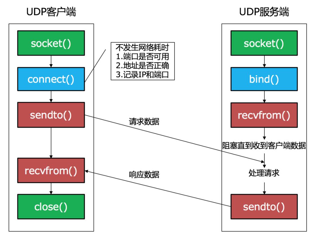 我们选取的方案是 UDP Connect,那么何为 UDP Connect?大家都知道 TCP 是面向连接的,传输数据前客户端都要调用 connect 方法通过三次握手建立连接,UDP 是面向无连接的,无需建立连接便能收发数据,但是如果我们调用了 UDP 的 connect 方法会发生什么呢?当我们调用 UDP 的 connect 方法时,系统会检测其端口是否可用,地址是否正确,然后记录对端的 IP 地址和端口号,返回给调用者,所以 UDP Connect 不会像 TCP Connect 发起三次握手,发生网络真实损耗,UDP 客户端只有调用 send 或者 sendto 方法后才会真正发起真实网络损耗。