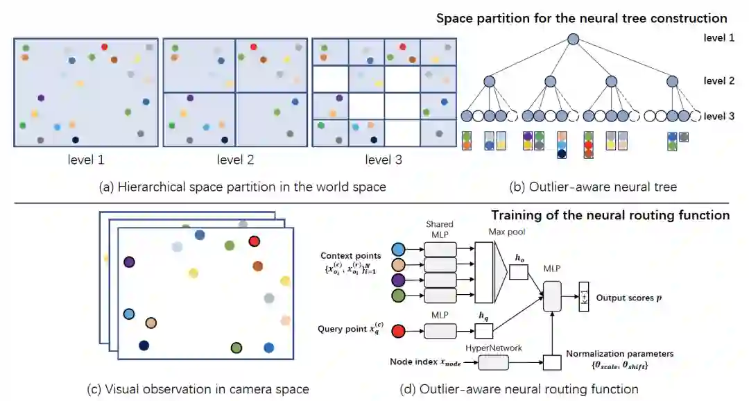 为解决上述问题,我们提出基于空间划分的神经路由算法 NeuralRouting。我们的直观见解是,场景中的动态变化通常表现为几何对象的三维位置改变。于是,我们从几何角度出发建模场景空间。