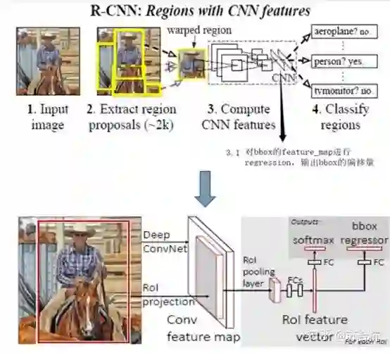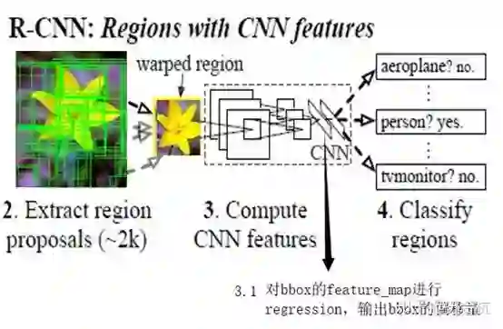 先进行region proposal(selective proposal,region proposal network等,找出可能是目标区域的bbox),再进行目标分类,和bbox回归