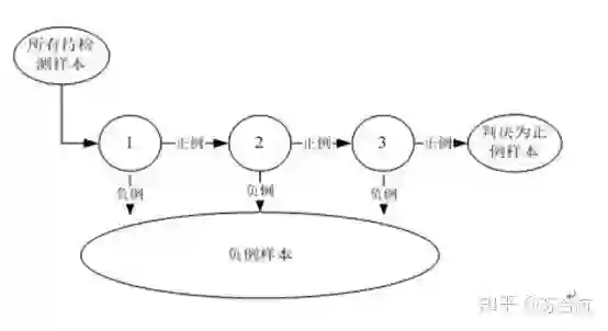 用多个分类器合作完成对候选框的分类,这些分类器组成一个流水线,对滑动窗口中的候选框图像进行判定,确定它是人脸还是非人脸。