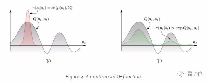继续以上述智能体为例。智能体反复观察当前状态(s),采取行动(a),获得奖励(r)。我们将函数Q(s,a)定义为在状态s下执行a行动之后的预期累积奖励。常规的强化学习方法是以指定最大Q值为中心的单峰策略分布,这导致下层通道完全被忽略。