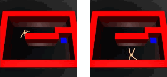 例如,一个在简单迷宫中寻找目标的机器人,在训练的时候,智能体学会了从上部通道找到目标的方法,因为这个距离较短。然而之后如果我们堵住上部通道,智能体发现原来掌握的技能不可行,但不知道还可以选择下部通道。最后只能重新训练智能体。