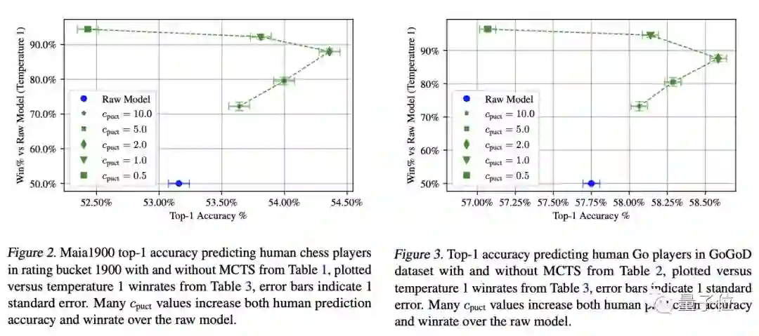 上图分别展示了该方法在国际象棋(左)、围棋(右)的表现。