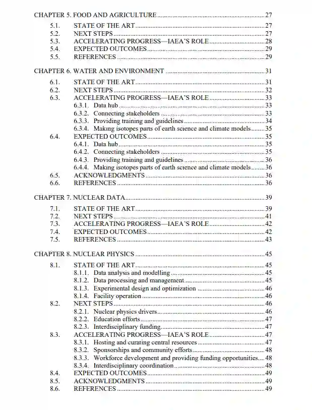 在核科学领域,人工智能驱动研究的重点是核数据流程的自动化。这些努力包括,例如,通过使用自然语言处理应用程序编译来自出版物的数据集,以及正在进行的使用ML方法进行鲁棒推理和有意义的不确定性预测的工作。此外,人工智能还可以协助验证任务和验证实验的设计。在核物理学界,人工智能和ML方法被应用于数据分析和理论建模,以提高科学理解和提高数据处理和管理的效率。进一步的努力涉及未来实验的设计和现有装置的优化,以及用于核物理的设施的操作,例如粒子加速器。最近在应用人工智能和ML方法解决磁约束和惯性约束聚变研究中的突出问题方面取得的成功表明,这些方法具有显著加速聚变研发的潜力。全球范围内的融合研发工作可以通过AI和ML更广泛地参与融合问题解决方案而受益。在核电领域,行业可以在自动化、设计优化、数据分析、预测和预测、见解提取等领域受益于AI。目前的工作重点是将人工智能技术从试点研究转移到更广泛的应用。在辐射防护方面,人工智能的应用及其与控制和监测过程的集成(如外部照射的个人剂量测定)有望产生更快、更灵活和更有效的过程,并有可能在该领域实现深层次的技术变革。特别是人工智能在分析、解释和理解包括辐射暴露在内的复杂工作过程时,可以模拟人类的认知。