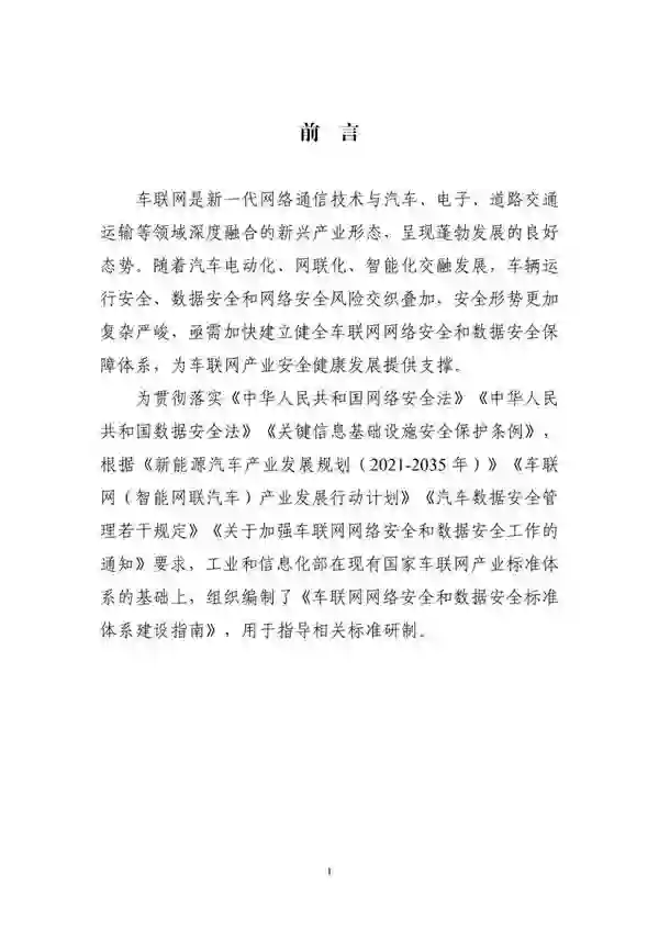 现将《车联网网络安全和数据安全标准体系建设指南》印发给你们,请结合本行业(领域)、本地区实际,在标准化工作中贯彻执行。