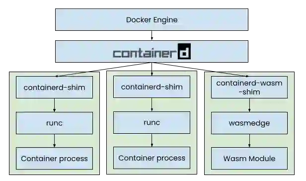 当前,Docker Engine 使用与 Docker 生态系统其他部分相同的 containerd 容器运行时,但它没有使用 runc 来运行容器进程,而是使用 WasmEdge 运行时。