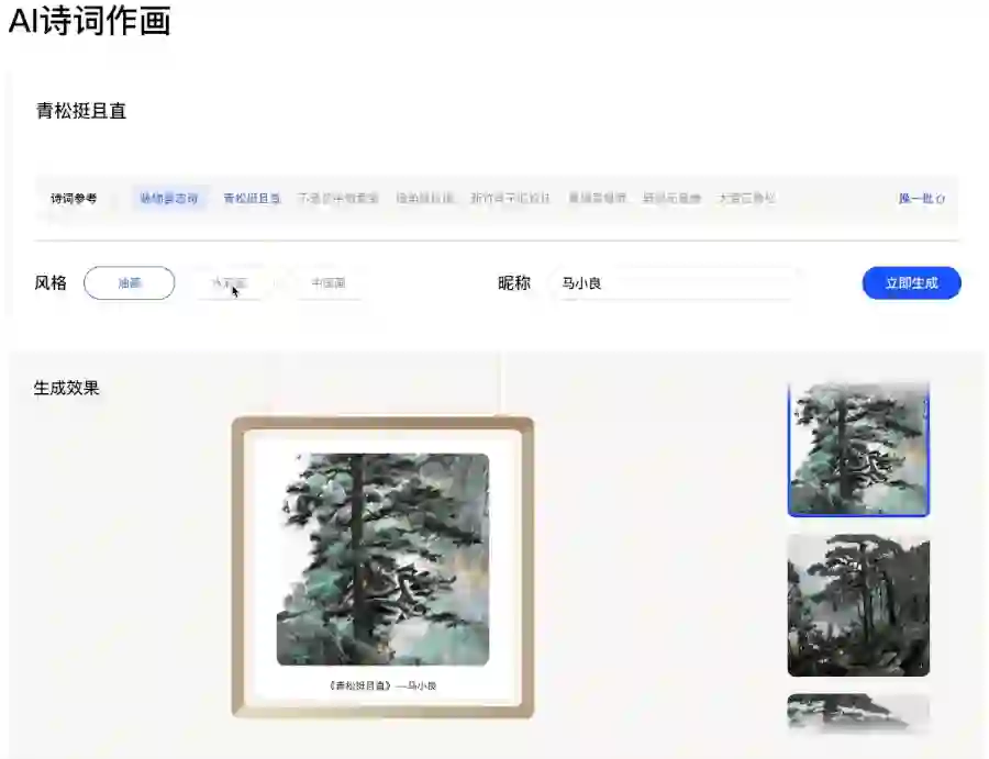 要注意这画、这诗都是AI全新创作的,在网上不会有一模一样的。