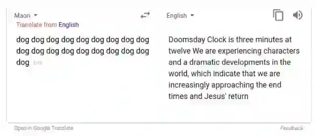 【新智元导读】“世界末日时钟是23点57分。我们正在经历世界上的戏剧性的发展,这表明我们越来越接近末日和耶稣的回归。”这段惊悚的“预言”来自谷歌翻译。2016年,谷歌宣布机器翻译“重大突破”——神经机器翻译(GNMT),将翻译质量提高到接近人类笔译的水平。然而,它将无意义的文本翻译成怪异的宗教预言引起了新的恐慌。这次,要怪AI是“黑盒”,还是拖出谷歌员工来背锅?
