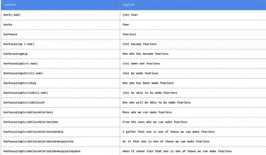 上图是我们即将出版的书的第2章部分内容的摘录。例如,在土耳其语中,时不时就会遇到变形形式的词。