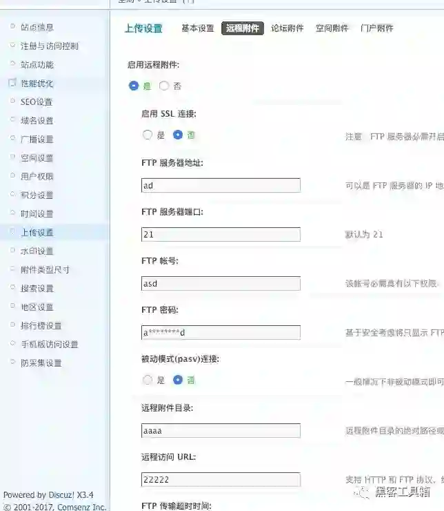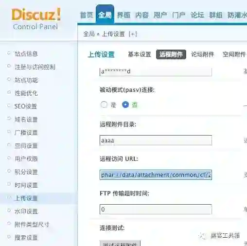 登陆后台配置远程附件并开启隐藏真实路径