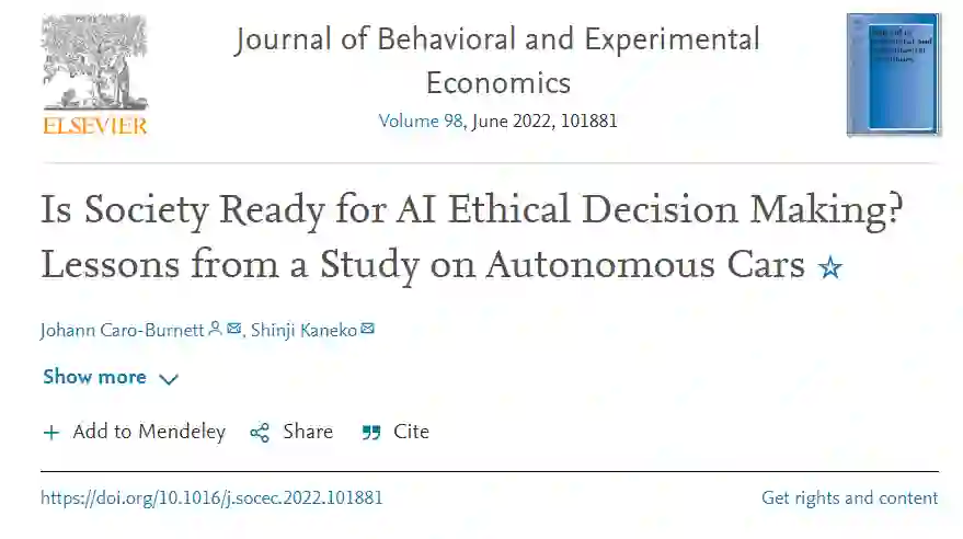 “事实上,当参与者被明确要求将他们的答案与社会的答案区分开来时,人工智能和人类司机之间的差异就会消失。”广岛大学人文社会科学研究生院助理教授 Johann Caro-Burnett 说。