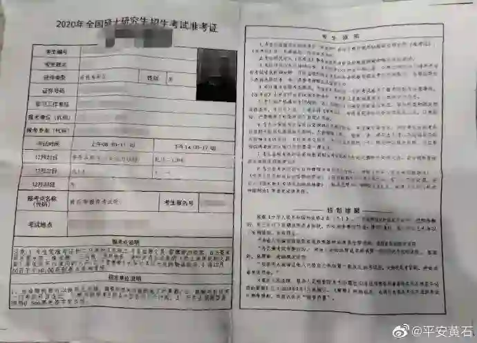 据@平安黄石 12月24日发布消息!12月21日上午,2020年全国硕士研究生招生考试“管理类联考综合能力(199)”科目开考,黄石某校监考工作人员在对一名考生进行身份核对、检查时发现异样,于是报警。