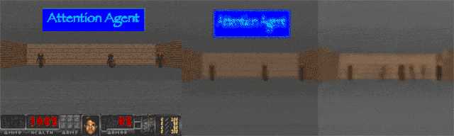 输入转换。给定一张观察到的图像,智能体首先把图像大小缩放为LxL,然后把图像分割为N个小块,每一个小块都有机会在后续的流程里被注意到