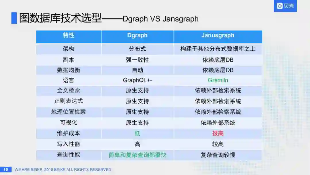维护成本方面:由于不依赖其他系统,Dgraph远低于JanusGraph。