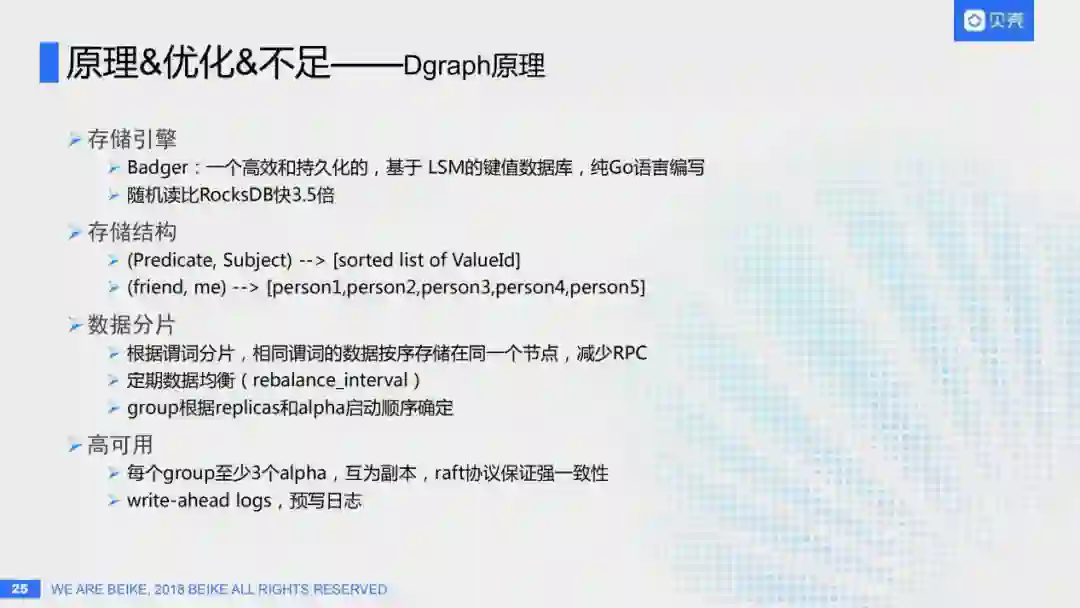 根据谓词分片,相同谓词的数据按序存储在同一个节点,减少RPC,提升查询性能,不同谓词可能是在不同的节点