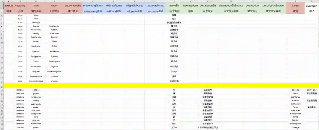 species、genus、family等关系用于直接连接病毒与其属类别、种类别结点。这样即可不通过遍历家族树直接找到其属。