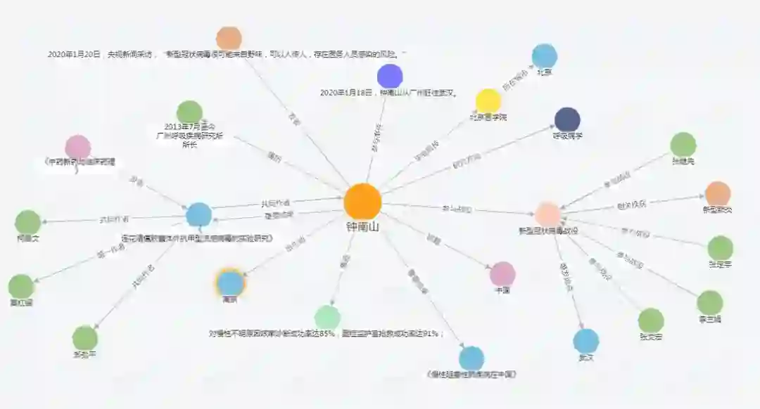 图谱以新冠病毒专家为核心延展至履历、成果、事件、战役等各类概念,形成新冠英雄知识图谱,可基于图谱进行英雄人物动态展示。
