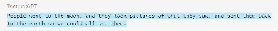 在面对同一指令(用几句话向一个 6 岁的孩子解释一下登月)时,InstructGPT 给出了如下的输出结果: