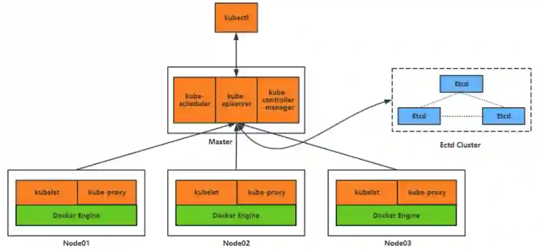 至此,我们已经成功构建了一个容器编排系统,我们来简单总结下上面提到的各个组成部分: